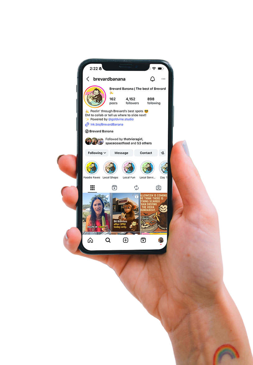 At Brevard Banana, we partner with Goldvine to shine a light on the heart of our community — the business owners who pour their blood, sweat, tears, and passion into creating amazing experiences for their customers. Together, we share honest, positive point-of-view reviews and engaging local content that helps both small and large businesses stand out. Because too many great places go unnoticed, and we believe every business with heart deserves to be seen, celebrated, and supported.